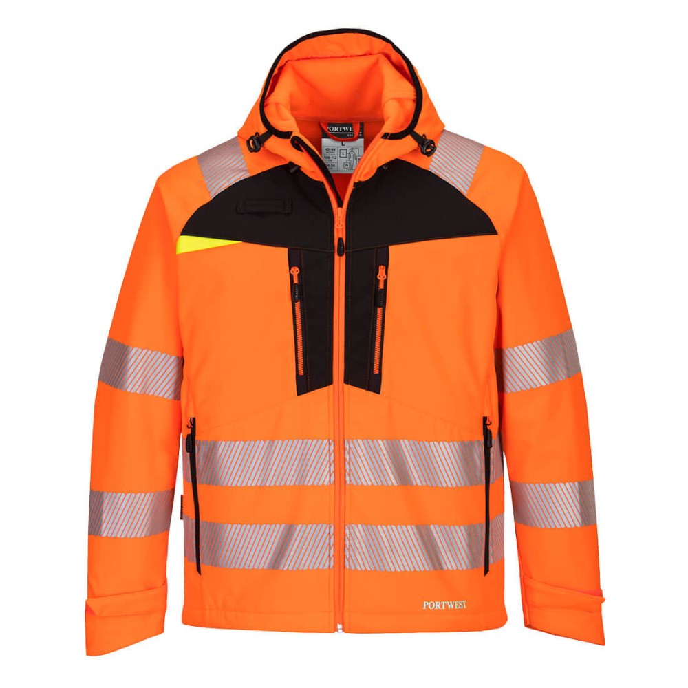 Portwest DX475 Softshell ad Alta Visibilità DX4 (3 Strati), Colore Arancione/Nero, Taglia 5XL, Collezione DX4, Categoria Alta visibilità.